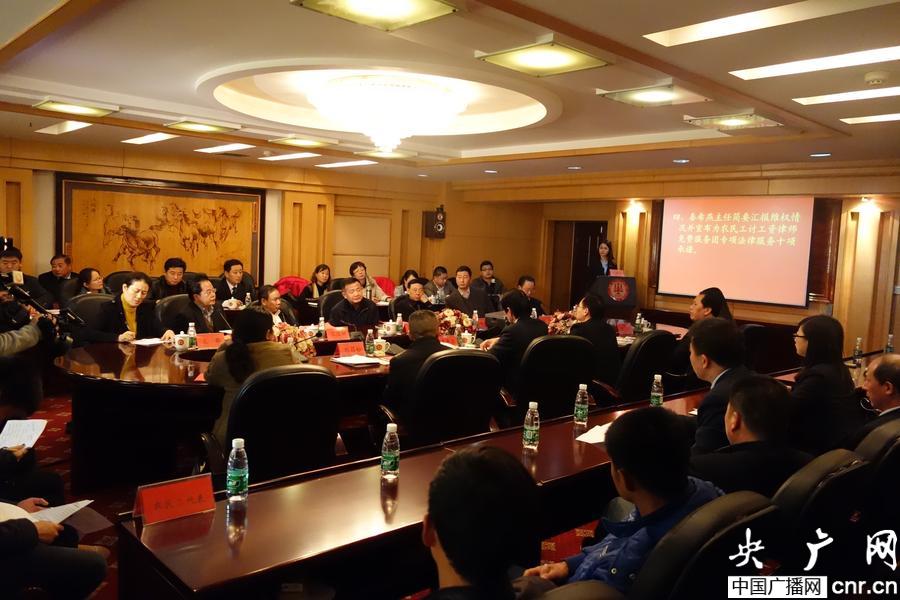在啟動儀式上,第十二屆全國人大代表、該所主任秦希燕簡要匯報了該所免費(fèi)為農(nóng)民工維權(quán)的情況,介紹了農(nóng)民工權(quán)益保護(hù)以及農(nóng)民工工資保證金制度落實等方面目前的現(xiàn)狀與存在的問題,并建議應(yīng)當(dāng)完善法律和制度,落實政策,加大監(jiān)管和執(zhí)法力度,從根本上切實解決拖欠農(nóng)民工工資問題。