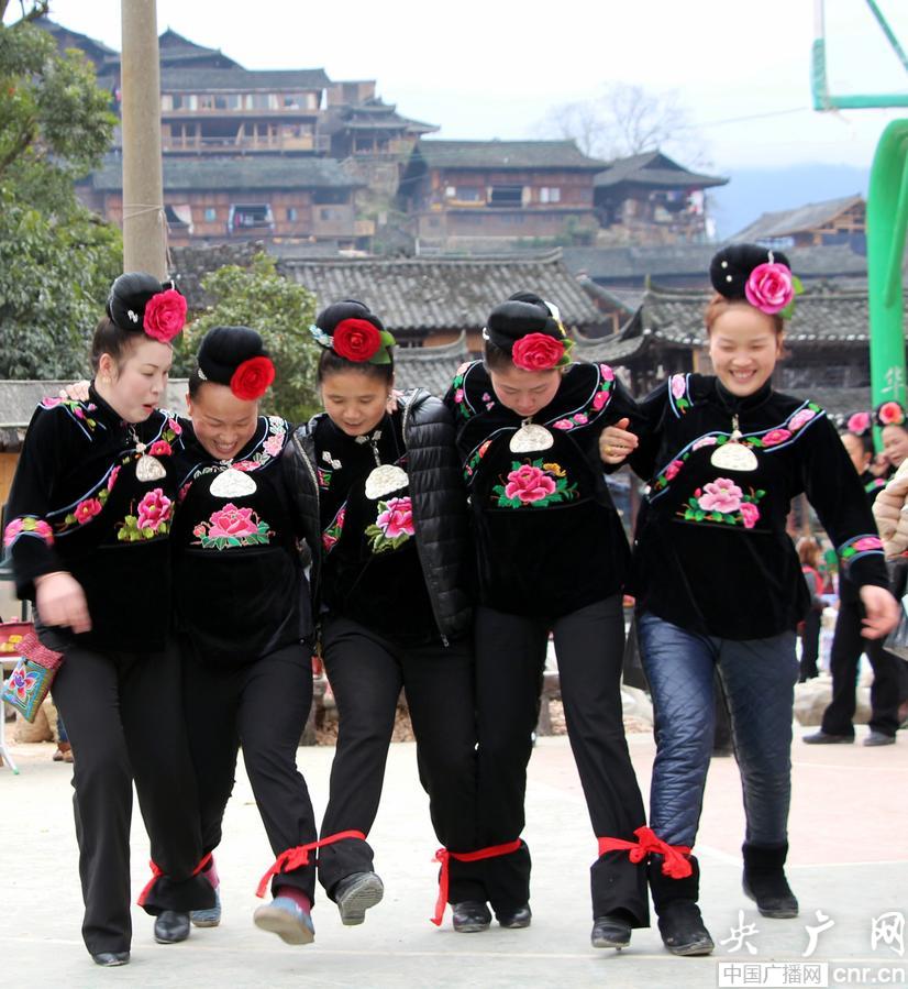 西江千戶苗寨苗族同胞舉行“齊頭并進”活動迎新年(央廣網發(fā) 李雪 攝 )