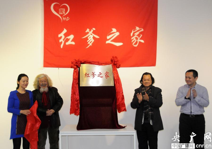 著名藝術(shù)家薛榮萍(左二)、資深媒體人魏光朗、(左三)和青年代表北京大學(xué)牛力博士(右一)、中國(guó)建設(shè)銀行總行杜楠副處長(zhǎng)為“紅爹之家”揭牌(央廣網(wǎng)記者 李單 攝)