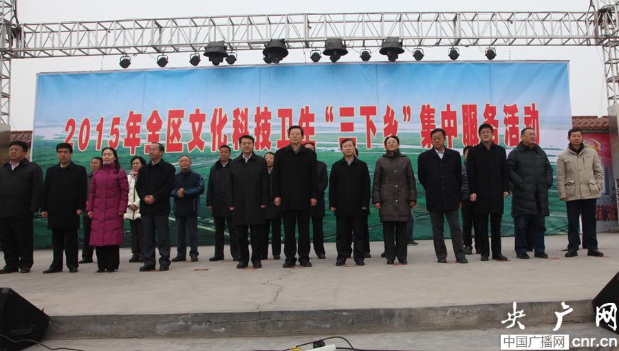 央廣網(wǎng)銀川2月3日消息 (記者許新霞、胡鈺)今天上午,2015年寧夏文化科技衛(wèi)生“三下鄉(xiāng)”集中服務(wù)活動(dòng)在寧夏回族自治區(qū)石嘴山市平羅縣黃渠橋鎮(zhèn)啟動(dòng)。寧夏回族自治區(qū)黨委常委、宣傳部長(zhǎng)蔡國(guó)英及自治區(qū)人大、政府、政協(xié)、各廳局有關(guān)負(fù)責(zé)人參加了該活動(dòng)。