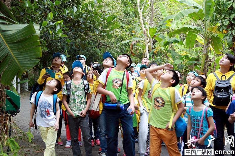 在游覽雨林谷的路上,孩子們對雨林里千奇百怪、種類繁多的珍奇植被十分感興趣,看到平時(shí)難得一見的熱帶雨林奇觀總會不自覺地發(fā)出驚呼。在帶隊(duì)老師和景區(qū)工作人員的引導(dǎo)和講解中,孩子們對雨林中的許多物種都如數(shù)家珍,留下深刻印象,其帶隊(duì)老師笑著說:“這種在戶外邊玩邊科普的方式比在課堂上學(xué)得快多了!”