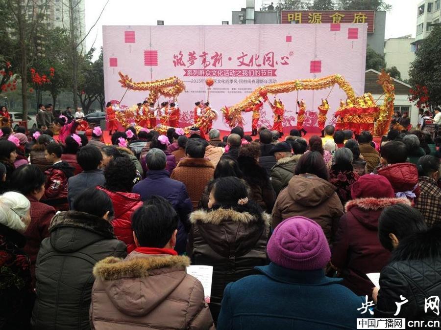 2015年春節(jié)期間,成都高新區(qū)將陸續(xù)開展一系列文化活動進園區(qū)活動。用傳統(tǒng)的民俗方式向轄區(qū)的企業(yè)和群眾送上節(jié)日的祝福,營造文明、歡樂、祥和的節(jié)日氣氛。