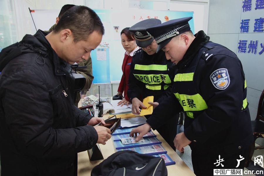 央廣網(wǎng)2月8日消息(記者葛朝興 通訊員何祥榮)2月6日中午,春運(yùn)的第三天,福州火車(chē)站派出所功模服務(wù)站內(nèi)一片歡聲笑語(yǔ),一對(duì)新婚夫妻正在給在場(chǎng)的民警分發(fā)喜糖……。原來(lái)是鐵路民警追300公里,5小時(shí)內(nèi)迅速幫助一名臺(tái)灣籍旅客找回價(jià)值25000余多元的貴重物品。