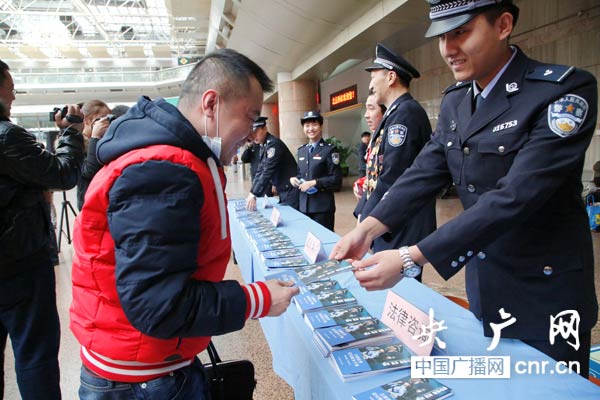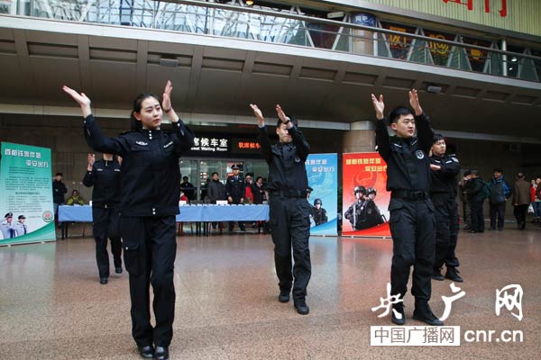 圖為2月6日,北京鐵路警方組織民警在北京西站為旅客進(jìn)行安全宣傳 攝影王海蛟
