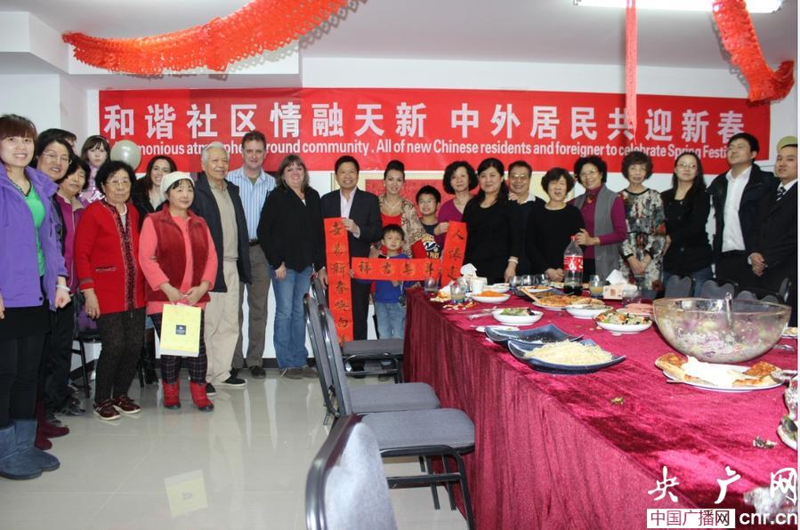 央廣網(wǎng)北京2月9日消息(記者李單 通訊員姚蕾)北京空港天竺新新家園社區(qū)會所昨天格外熱鬧。為了融洽中外鄰里關(guān)系,讓外國人感受中國傳統(tǒng)節(jié)日,在異國他鄉(xiāng)不再孤單寂寞,天竺新新家園社區(qū)舉辦了“情融天新 中外居民過大年”活動,此次活動邀請了中國、德國、美國、越南等40余居民參加。