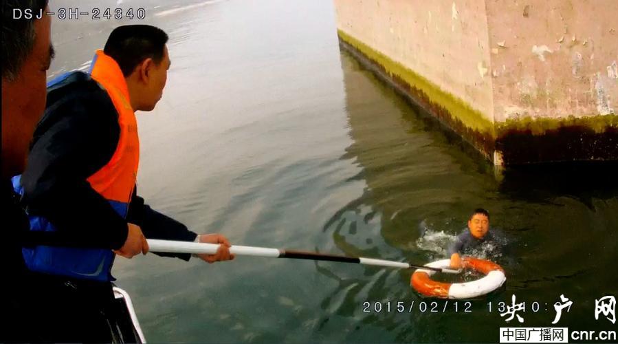 4分鐘后,“海巡12141”艇趕到云陽長江大橋水域,發(fā)現(xiàn)一名男子攀附在大橋水下橋墩上,身體已沒入湍急的江水中,只剩下頭部露在水面呼救,情況十分危急。駕駛員小心地駕駛海巡艇地慢慢靠近落水人員,對(duì)遇險(xiǎn)人員喊話,安撫穩(wěn)定其情緒。同時(shí),救援人員及時(shí)向落水者拋投救生圈,并用救生桿拉著落水者慢慢向海巡艇舷邊移動(dòng)。由于落水者從30幾米高的橋上跳下已經(jīng)受傷并受到過度驚嚇,抓住海巡艇中部靠把后便不松手,救援人員也無法拉其上船。經(jīng)過海事執(zhí)法人員安撫穩(wěn)定其情緒,并用纜繩套住其腰部,將其慢慢移至船尾部,一下拉到船上,落水者終于獲救。隨后,執(zhí)法人員迅速撥打了120急救電話,并將其送往長航公安躉船救助了解情況。