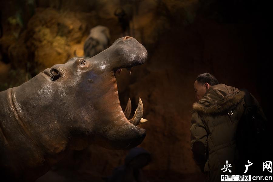 央廣網(wǎng)濟南2月23日消息 (記者柴安東)春節(jié)期間,一位市民正在山東省博物館觀看河馬標本。