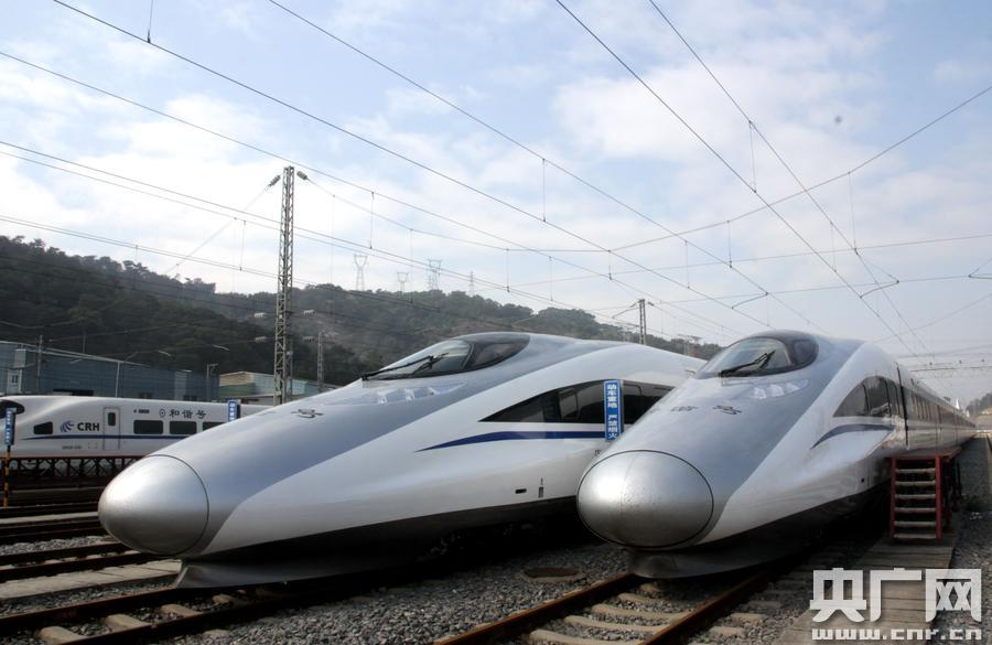 首批3列CRH380A高速動(dòng)車組抵達(dá)福州動(dòng)車段,福建正式進(jìn)入380公里的高鐵時(shí)代。(央廣網(wǎng)發(fā) 孫文龍 攝)