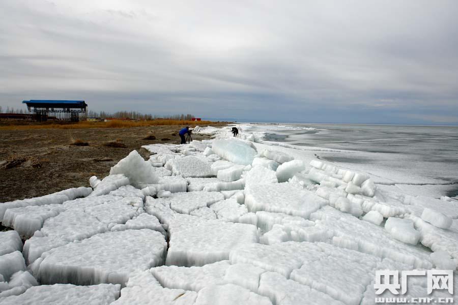 游客張丹對記者說:“足足有五十公分厚的冰塊從湖區(qū)吹到湖邊,感覺特別神奇、壯觀,體會到大自然的鬼斧神工!