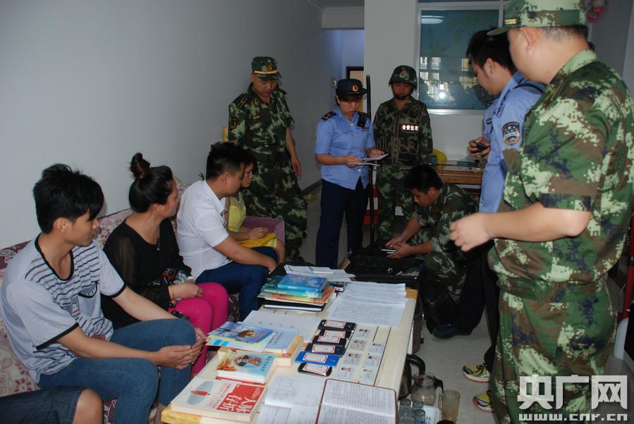 打傳聯(lián)合執(zhí)法隊伍正在整理搜查到的證據(jù)。(央廣網(wǎng)發(fā) 陳立群 攝)