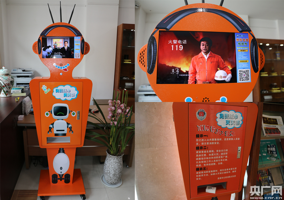 消防宣傳機器人,是一款集宣傳與服務(wù)于一體的新型設(shè)備,造價15800元。其通體橙色,身高一米八,這種設(shè)計不僅視覺上搶眼,而且其高度也十分貼合消防鐵軍的正能量形象。這款機器人是由寧波慈溪市消防大隊和余姚市神瑋文化傳播有限公司共同協(xié)商制作的,主要放置在車站、商場、賓館等城區(qū)人員密集場所,首批試點的10臺消防機器人已悉數(shù)上崗服務(wù)。