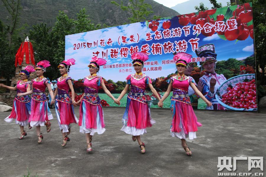汶川甜櫻桃采摘旅游節(jié)開(kāi)幕式上的文藝表演(央廣網(wǎng)記者 賈宜超 攝)