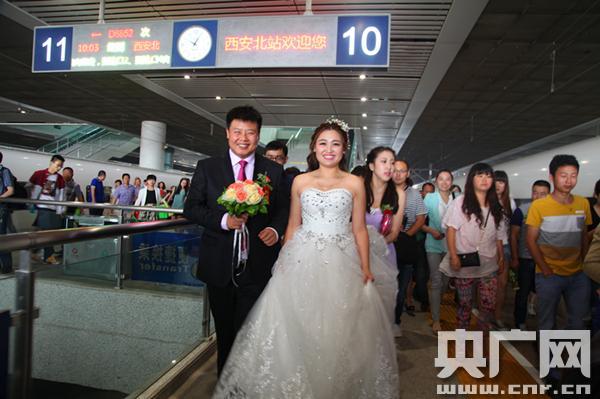 央廣網西安5月24日消息(記者劉濤 通訊員王國強)異地結婚,以前常常需要辦兩次婚禮,而在高鐵時代,不再那么麻煩。1小時內穿越二百公里,兩地親朋齊聚一堂把手牽。一位旅客說:“在過去,這是想都不去想的事情,如今竟成為了現(xiàn)實!”