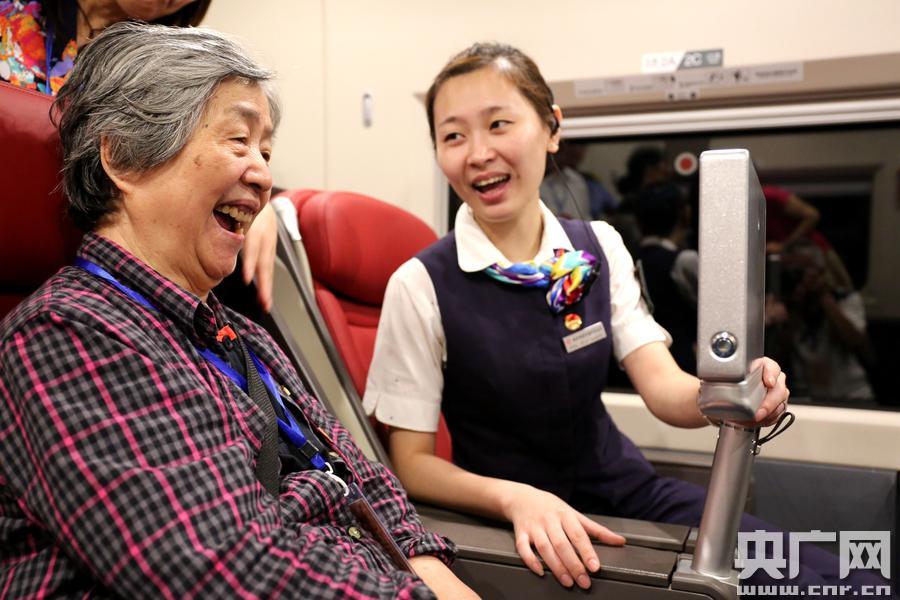 央廣網(wǎng)福州6月17日消息(記者葛朝興 通訊員雍萬。┖细8哞F進(jìn)入實圖試運行期間,福州地區(qū)近70名老鐵路乘坐福州至武夷山東站G1280次列車首次體驗合福高鐵新速度。