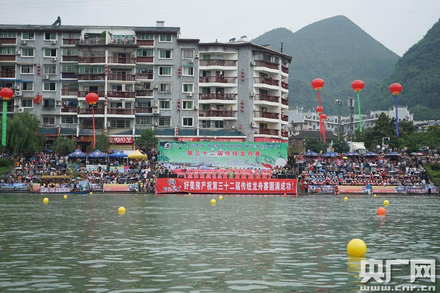 央廣網(wǎng)隸屬黔東南州6月21日消息(記者王珩 孟海 陳玉 通訊員楊通航攝)“咚、咚、咚……”, 20日,氵舞陽河面百舸爭流,龍舟飛渡,戰(zhàn)鼓雷鳴,貴州省鎮(zhèn)遠(yuǎn)縣第三十二屆傳統(tǒng)龍舟文化節(jié)隆重舉行。當(dāng)天,河兩岸觀眾加油鼓勁,運(yùn)動(dòng)健兒揮漿劈浪,奮力前行,向人們展示鎮(zhèn)遠(yuǎn)速度。