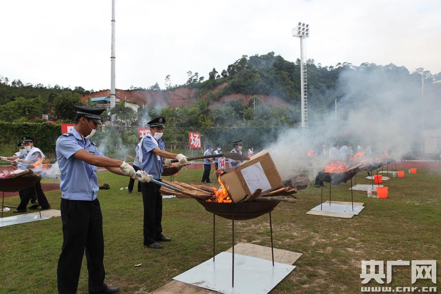 警方現(xiàn)場(chǎng)銷毀海洛因、冰毒等毒品(白董 攝)