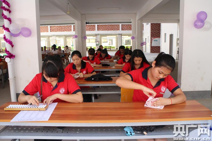 學(xué)生們進(jìn)行點(diǎn)鈔表演(央廣網(wǎng)發(fā) 通訊員莫惘 唐曉慧 攝)