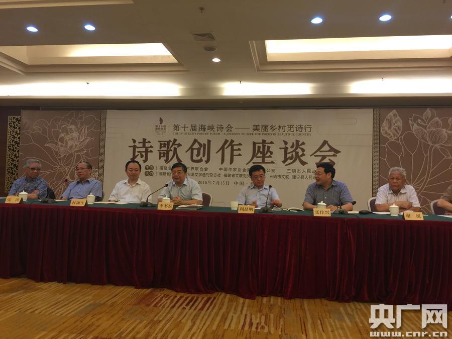 央廣網7月15日建寧消息(記者洪波 張子亞)第十屆“海峽詩會-美麗鄉(xiāng)村覓詩行”今天福建建寧開幕。本屆“海峽詩會”由中國作家協(xié)會港澳臺辦公室、福建省文學藝術界聯(lián)合會、三明市人民政府共同主辦,來自海峽兩岸的近三十位詩人蒞會。