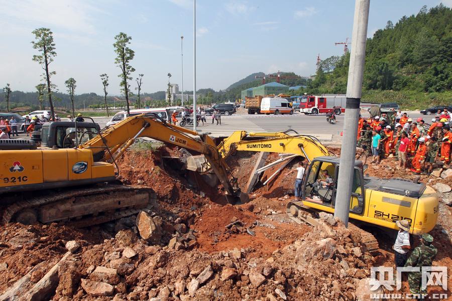 央廣網(wǎng)重慶7月20日消息(記者陳鵬 通訊員阮守軍)7月18日上午,重慶黔江區(qū)正陽街道市民西路與桐坪路交匯路口,正在施工建設(shè)中的市民西路工地上,在進(jìn)行挖排水溝施工作業(yè)時(shí),突然發(fā)生塌方事故,一名在現(xiàn)場(chǎng)指揮挖掘機(jī)作業(yè)的工地管理人員被垮塌的土石方埋壓。事故發(fā)生后,黔江區(qū)消防、公安、安監(jiān)、醫(yī)療等部門迅速趕往現(xiàn)場(chǎng)救援,經(jīng)過全力救援終于將被困人員救出,但其已不幸身亡。