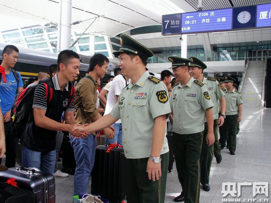 央廣網(wǎng)廈門9月6日消息(記者陳庚 通訊員黃勛 張英力)昔日立志從軍保家衛(wèi)國(guó),今朝榮歸故里再創(chuàng)輝煌。9月5日,伴隨著一首首軍營(yíng)老歌《我的老班長(zhǎng)》、《老兵,你還記得嗎?》、《送戰(zhàn)友》……,武警廈門支隊(duì)2015年度秋季退伍老兵踏上返鄉(xiāng)征程。