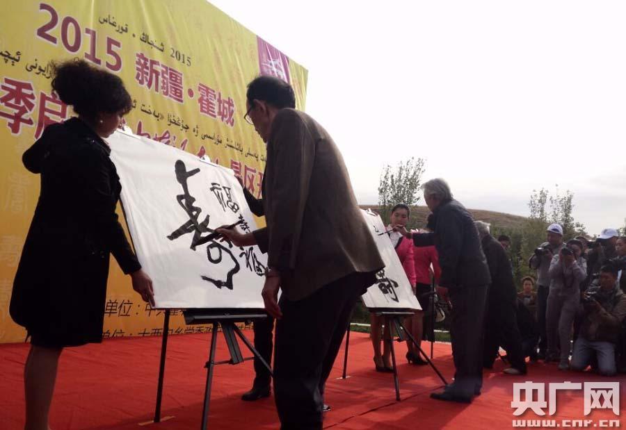金秋時節(jié),新疆霍城縣大西溝景區(qū)福壽山層林盡染。開園儀式上,來自全國和伊犁的知名書法家為四位百歲老人現(xiàn)場揮毫“福壽”二字墨寶,精神矍鑠的百歲老人現(xiàn)場向游客拋撒福袋,為大家祈福。