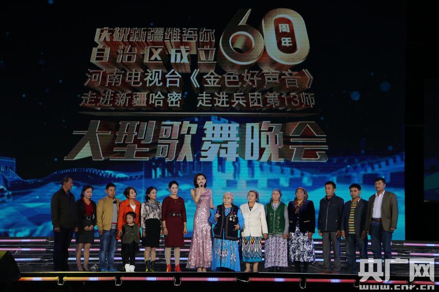 新疆兵團(tuán)第十三師副政委、黨委組織部部長張明勝稱,河南衛(wèi)視《金色好聲音》走進(jìn)哈密、走進(jìn)新疆兵團(tuán)第十三師,旨在以異彩紛呈的歌舞、感人至深的故事,呈現(xiàn)自治區(qū)成立60周年的輝煌歷程與兵團(tuán)人屯墾戍邊的歷史記憶,歌頌各民族人民在不平凡歲月中建設(shè)大美新疆的激情與奉獻(xiàn)。