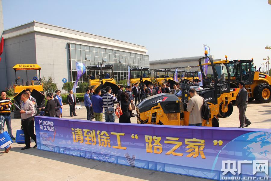 領(lǐng)導、嘉賓攜手客戶參觀徐工成套筑養(yǎng)護機械產(chǎn)品(央廣網(wǎng)記者 楊守華 攝)