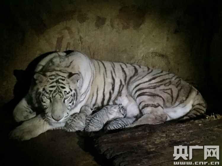 在虎媽媽臨產(chǎn)的前幾天,獅虎山的獸醫(yī)與飼養(yǎng)員每天都密切的關(guān)注這只白虎媽媽,在24日晚,細(xì)心的飼養(yǎng)員就觀察到了這只白虎的異常狀況,知道這只白虎將要臨盆。
