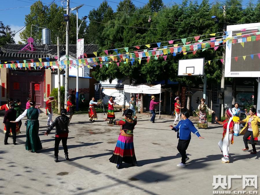 鄭家莊的七個民族的村民在文化廣場同跳一支舞(攝影李健飛)
