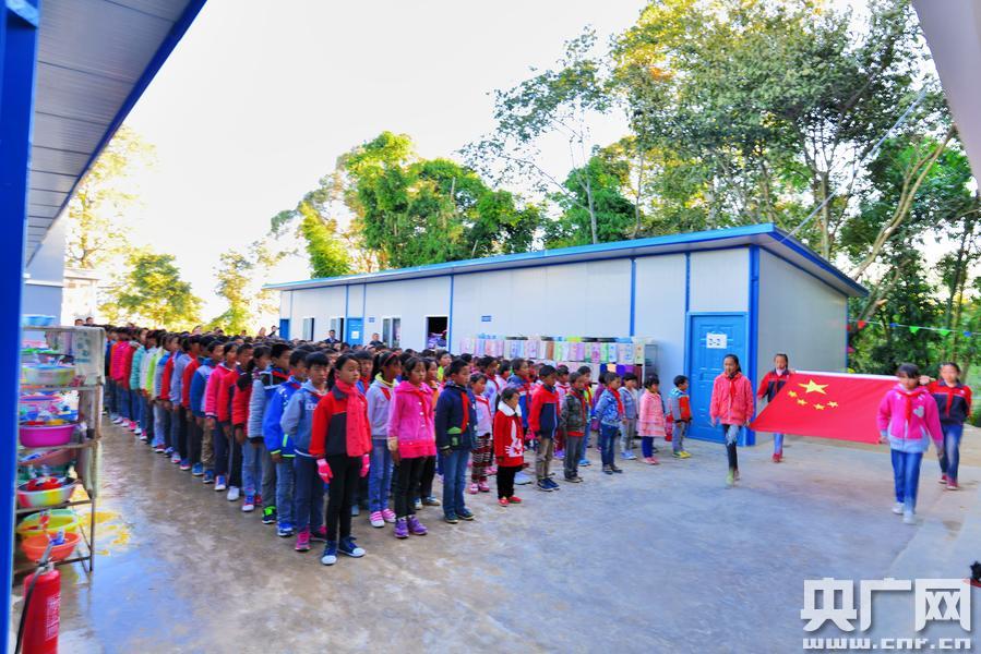 央廣網(wǎng)保山11月9日消息(記者李騰飛 通訊員吳再忠 羅宇鈞)9日是星期一,上午八點(diǎn)整,云南省昌寧縣大田壩鎮(zhèn)華嚴(yán)村完小,252名在校學(xué)生在老師的帶領(lǐng)下,整齊地排列在活動(dòng)板房之間的空地上,參加了升旗儀式。
