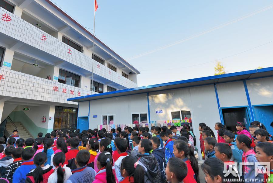 升旗儀式結(jié)束后,學(xué)生們?cè)诶蠋煹膸ьI(lǐng)下,有序地走進(jìn)教室,校園里又傳出瑯瑯讀書(shū)聲。10月30號(hào)19時(shí)26分,昌寧縣發(fā)生5.1級(jí)地震,震中大田壩全鎮(zhèn)6個(gè)村17所學(xué)校受到損壞。大田壩鎮(zhèn)中心完小校長(zhǎng)字浩武介紹:“受損較為嚴(yán)重的是文滄完小、華嚴(yán)完小和中心完小三個(gè)學(xué)校,被迫停課一周。昨天晚上,全鎮(zhèn)684名停課學(xué)生全部到校,今天全部正常上課。”復(fù)課后,學(xué)校組織學(xué)生學(xué)習(xí)了防震減災(zāi)知識(shí),并對(duì)學(xué)生進(jìn)行心理疏導(dǎo)。