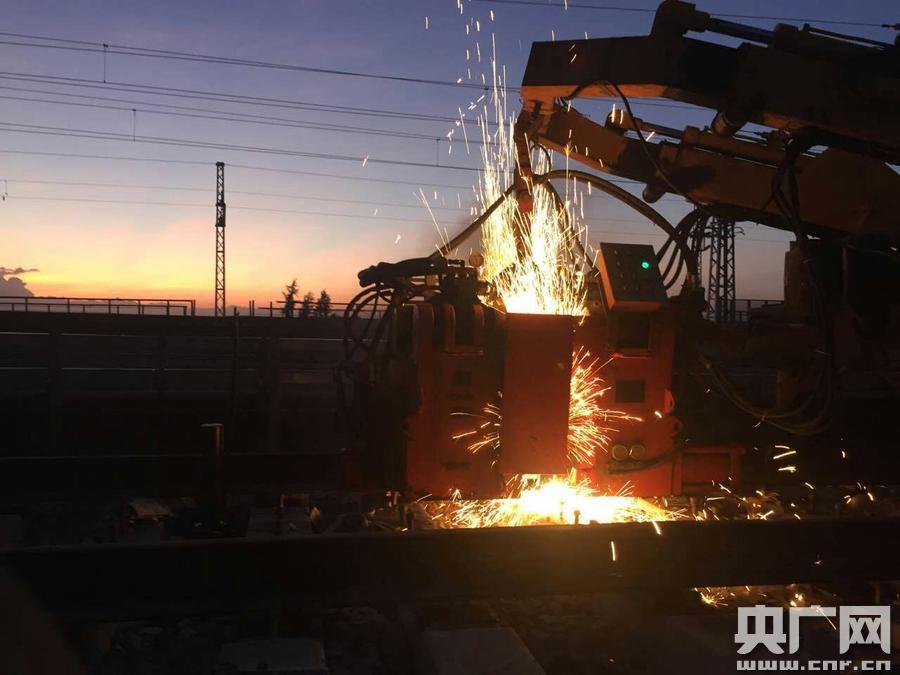 央廣網(wǎng)?11月13日(記者 吳媚苗 通訊員 雷德獻(xiàn) 蔡晶 攝)2015年11月12日18:30分海南東、西環(huán)高鐵內(nèi)包聯(lián)絡(luò)線完成最后一個(gè)鋼軌接頭的焊接,外聯(lián)絡(luò)線正在緊張進(jìn)行中。焊接完成后,所有鋪在路基上的鋼軌將焊接成無(wú)縫鋼軌。