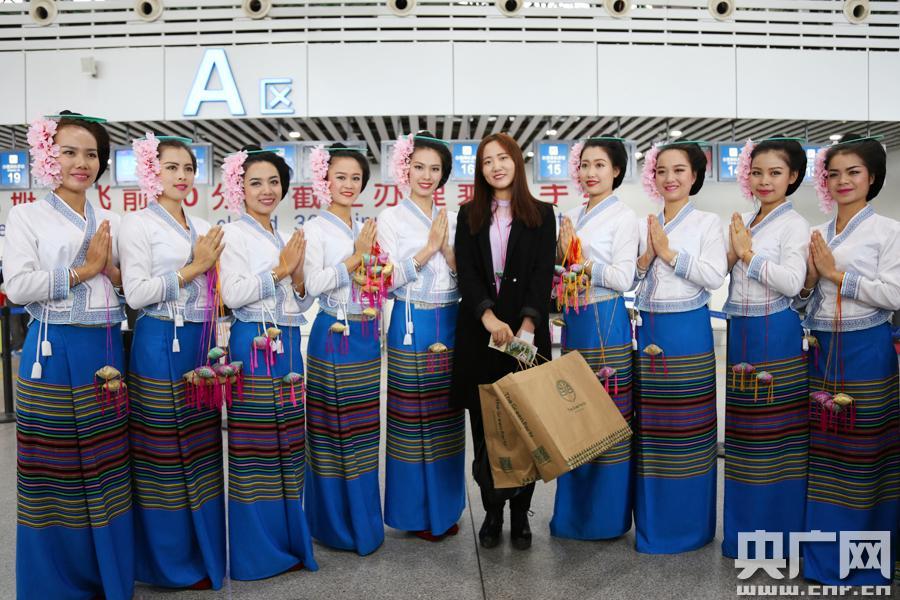 來自內(nèi)蒙古赤峰市的姚紅雪幸運(yùn)的成為了云南西雙版納機(jī)場(chǎng)今年的第400萬名旅客(攝影 虎遵會(huì))