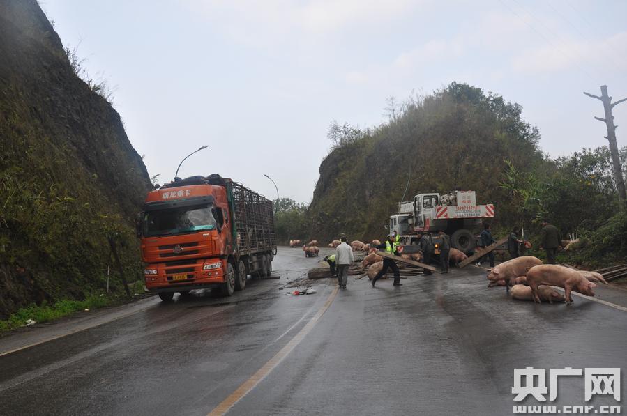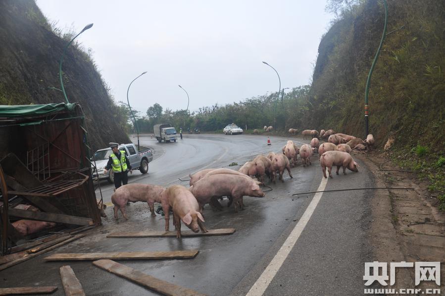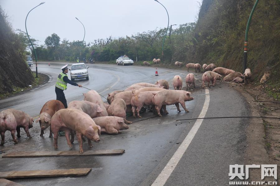 近日,普洱市一重型貨車在下坡轉(zhuǎn)彎過程中發(fā)生側(cè)翻,車上161頭生豬逃脫在公路上“撒歡”一個(gè)多小時(shí)。