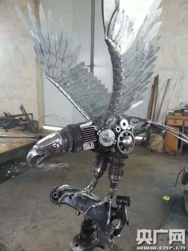許高鵬說:“這個廢鐵我們都是在外邊收的,給別人就扔到八鋼這樣的煉鋼廠了,用不到了。我們想的把它拿過來之后,做成我們就覺得欣賞的這種工藝品,藝術(shù)品呀這樣子,放在家里邊,別人擺在家里邊,也挺好看的!