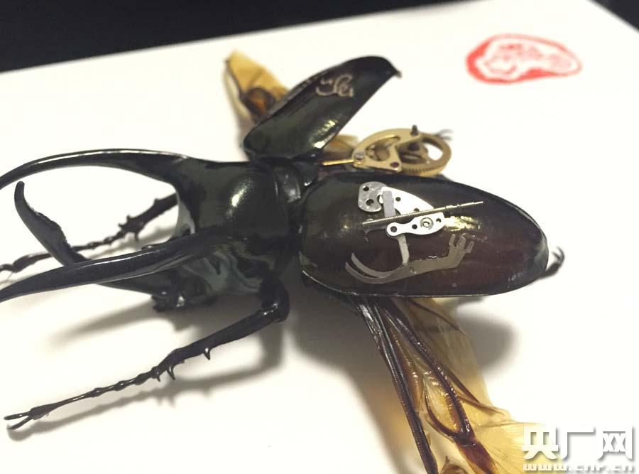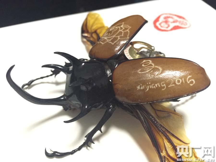 馬馳使用的蟲子標(biāo)本是來自泰國的兜蟲,就是咱平常熟悉的金龜子。由于翅膀上有一層蠟質(zhì)油跡,不僅表面光滑,字墨也難以沁入。他說:“它在轉(zhuǎn)動起來的時候,特別容易滑動到其他的位置,所以手一定要特別的穩(wěn)!