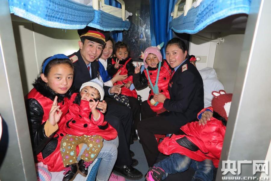 1月7日下午,王孜慧與青島客運段和西寧站取的聯(lián)系,由此一場愛心傳遞大幕將從青海拉開帷幕….. 因為夏倉更群買的臥鋪不相鄰,而且有上鋪和中鋪,Z274列車長張博海特意給這11人安排到了兩個相鄰的臥鋪區(qū),還安排了兩位年輕列車員帶著玩具,一路專門照顧孩子們一起玩耍。