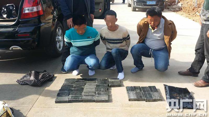 1月13日,禁毒大隊(duì)在工作中獲悉:“有一伙鎮(zhèn)康人駕駛一輛無(wú)牌黑色黃海牌越野車(chē)準(zhǔn)備運(yùn)輸毒品到昆明,可能于1月14日交貨!苯拥酱司索后,禁毒大隊(duì)迅速安排偵查民警前往鎮(zhèn)康縣南傘鎮(zhèn)開(kāi)展偵查工作。1月14日15時(shí)許,偵查民警在臨滄市鎮(zhèn)康縣南傘鎮(zhèn)安然汽車(chē)修理廠岔路口查獲一輛黑色黃海牌越野車(chē),抓獲犯罪嫌疑人王康某(男,34歲,臨滄市鎮(zhèn)康縣人)、王浩某(男,39歲,臨滄市鎮(zhèn)康縣人)、楊天某(男,25歲,臨滄市鎮(zhèn)康縣人),當(dāng)場(chǎng)從黃海牌越野車(chē)上查獲毒品海洛因34塊,計(jì)重12300克。經(jīng)審訊,3名犯罪嫌疑人欲將毒品從鎮(zhèn)康南傘運(yùn)往昆明。