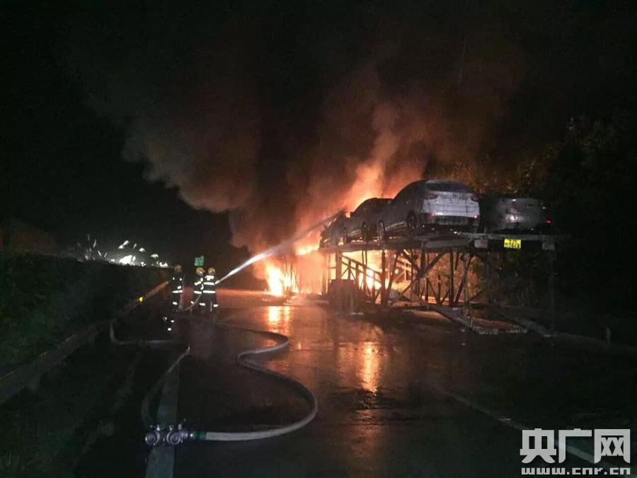 央廣網(wǎng)南寧1月26日消息(記者 張壘 許大為 通訊員 鐘德林)1月25日20時(shí)許,G80線廣昆高速公路岑溪段發(fā)生一起重型掛車行駛中起火,導(dǎo)致所運(yùn)載的13輛小汽車燒毀,無人員傷亡,交通暫時(shí)中斷,當(dāng)?shù)叵馈⒔痪綀鎏幹谩?/p>
