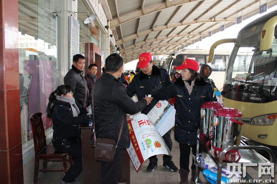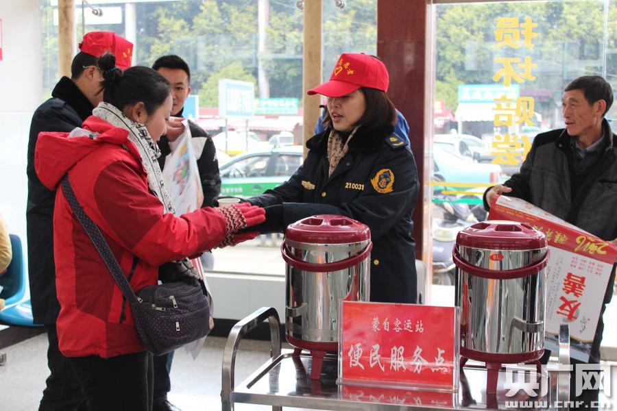 紅河州運(yùn)管局人員為旅客遞上開水并贈送年歷