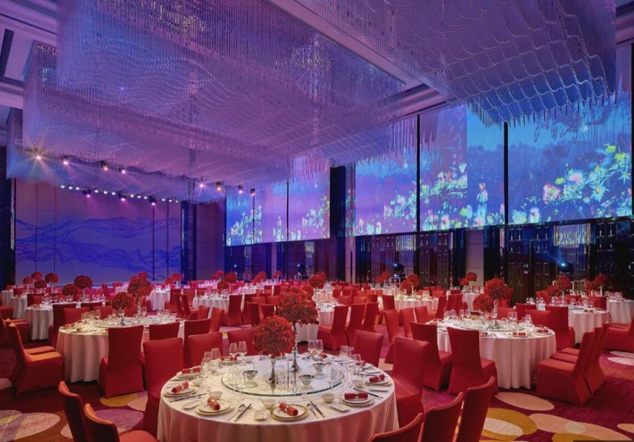 ?谙栴D酒店海航宴會廳婚宴擺設(shè)