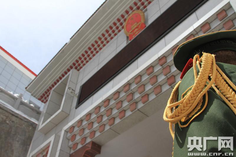 圖為亞東邊檢站國門哨兵正在崗位執(zhí)勤 張秩彬 攝