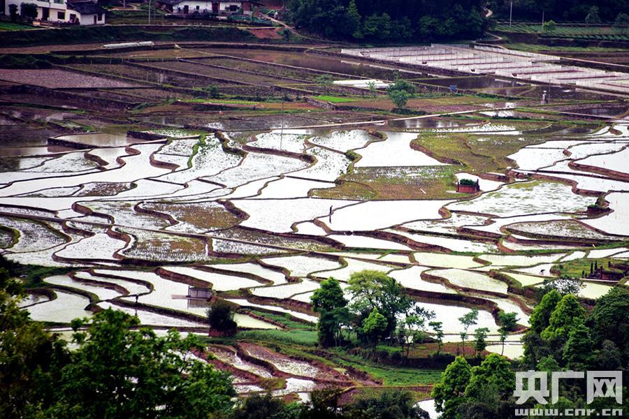 素有“川南小峨眉”之稱的敘永縣丹山風(fēng)景區(qū)腳下的萬畝梯田,以連綿不絕的丹霞地貌和喀斯特巖溶地貌著稱于世,成片的梯田隨著山體溝壑舒展起伏,伴隨點(diǎn)綴其間錯(cuò)落有致的川南民居,如層層波浪漫卷開來,盡顯蜀地的壯美風(fēng)姿,吸引了眾多游客前往參觀拍照。