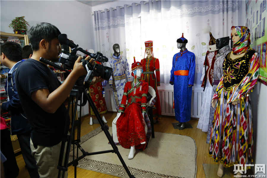 新疆布音庫(kù)文化傳播有限公司精美的各民族服飾引起了記者極大的興趣