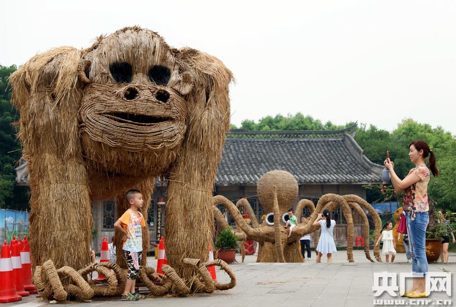 央廣網(wǎng)廣安9月8日消息(記者韓民權(quán) 廣安臺(tái)記者蘇坤明 王曉波)被陸游譽(yù)為中國(guó)“農(nóng)家樂”之源的盛產(chǎn)優(yōu)質(zhì)水稻而享有“銀岳池”美譽(yù)的四川廣安市岳池縣,以變廢為寶喜慶豐收為主題的首屆“稻草人魔幻藝術(shù)節(jié)”于9月3日在該縣“岳池農(nóng)家第一莊”開幕。此次“稻草人魔幻藝術(shù)節(jié)”展出的卡通人物、西游記、森林動(dòng)物王國(guó)等作品,由20多名民間藝人利用秋收后的稻草,歷時(shí)一月純手工編織而成。各種主題稻草造型,呈現(xiàn)了一場(chǎng)美侖美奐、多角度立體化頂級(jí)稻草原創(chuàng)造型的饕餮盛宴,讓人們盡情投入在田園稻草人的世界,集體憶童年,找回難忘的童年樂趣。