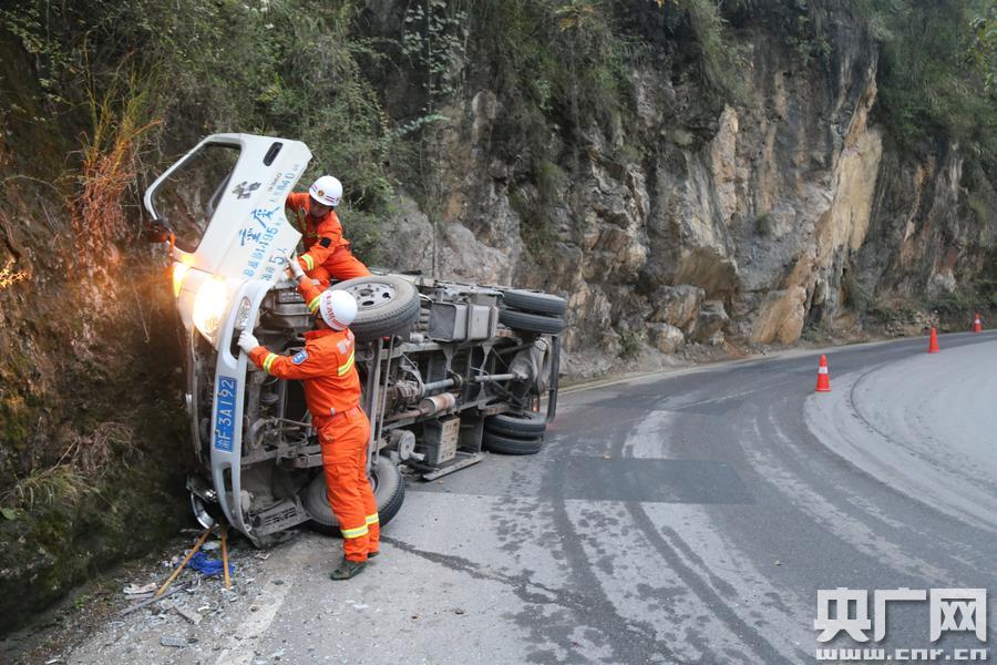央廣網(wǎng)重慶11月1日消息(記者 劉湛 通訊員 宋林汶)今天清晨6時(shí)48分,重慶巫溪縣城廂鎮(zhèn)墨斗村省道201路段急彎處,一輛從巫溪縣上磺鎮(zhèn)開往巫溪縣城方向的輕型貨車失控發(fā)生側(cè)翻撞向路邊山坡,車上2人被困。巫溪縣消防大隊(duì)接到報(bào)警電話后,迅速出動(dòng)一輛搶險(xiǎn)救援車、6名消防官兵趕往現(xiàn)場(chǎng)救援,消防官兵到場(chǎng)后將車上2名被困人員成功救出,事故造成1人死亡、1人受傷。