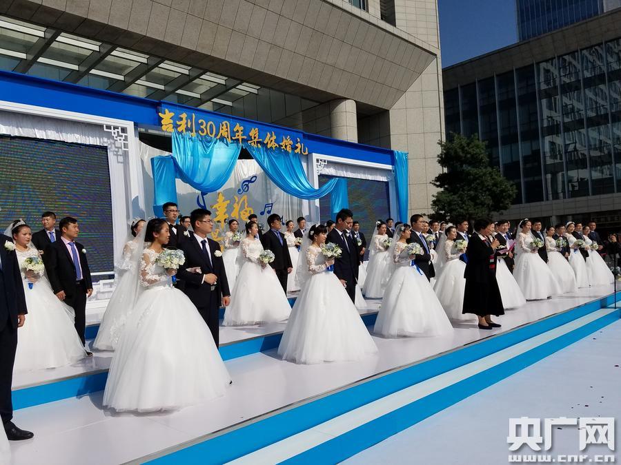 杭州吉利總部為30對新人舉行集體婚禮。(央廣網記者 張國亮 攝)