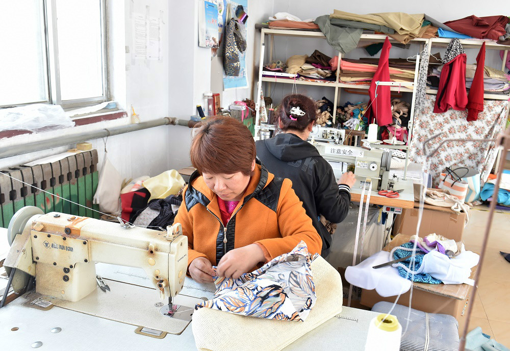 新河鎮(zhèn)南鎮(zhèn)村55歲的留守婦女王青梅說起這扶貧驛站里面各類手工項目,心里樂開了花,“有了這個扶貧驛站真好,年齡大走不出村,能從驛站里面掙些手工零錢補貼家用,家庭經(jīng)濟改善了!”王青梅丈夫因病去世后,自己撫養(yǎng)一兒一女。因無力耕種,將家中7畝耕地流轉(zhuǎn)出去,年收入1050元。今年鎮(zhèn)上“扶貧驛站”幫其購買了縫紉機,從青島民生工藝品有限公司村辦加工點取料加工縫制工藝品的里子?p制一個里子可收入0.1元,一天可收入40多元,王青梅足不出戶一年便可收入1.2萬元左右。