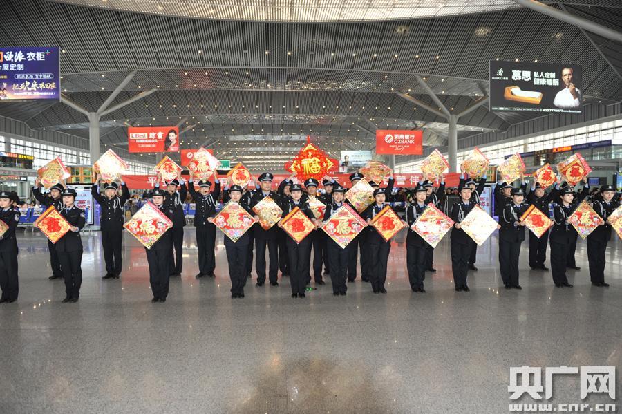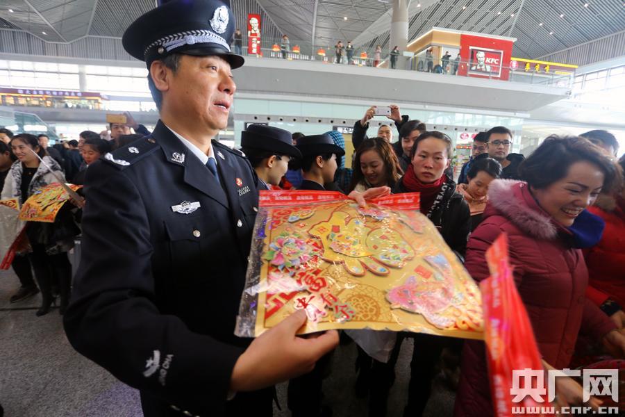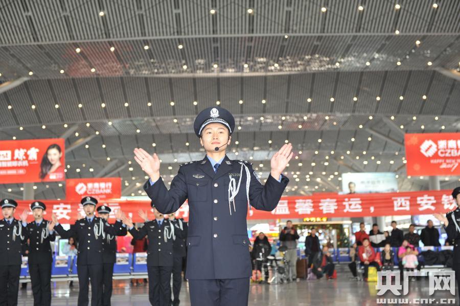 西安鐵路公安處處長(zhǎng)于廣燕為群眾送“!保▍腔顫姅z) 央廣網(wǎng)西安1月12日消息(記者雷愷 通訊員吳活潑 胡珂)春運(yùn)大幕即將將拉開,今天(12日),西安鐵路公安處在西安北站全面啟動(dòng)春運(yùn)安保工作。 在西安北站二樓候車廳,一場(chǎng)精彩激昂的架子鼓秀吸引了旅客的駐足。一群身著警服的民警走進(jìn)旅客中間,以一曲《回家的路》拉開了西安鐵警春運(yùn)愛民服務(wù)活動(dòng)的序幕。隨后,特警、交警、乘警、治安、安檢等警種民警依次上臺(tái),通過情景模擬演練、面對(duì)面宣講、有獎(jiǎng)問答等形式,向過往旅客宣傳春運(yùn)出行安全常識(shí)。 西安鐵路公安處處長(zhǎng)于廣燕介紹,今年春運(yùn),西安鐵警緊盯高鐵旅客出行安全這一重點(diǎn),全處1800名民警和2600多名輔警全員在崗,全面提升轄區(qū)治安管控工作等級(jí),重拳打擊以倒賣車票、盜竊財(cái)物、欺詐旅客等各類慣性違法犯罪活動(dòng)為主要內(nèi)容的“獵鷹”“天網(wǎng)”“利劍”三大戰(zhàn)役,努力為廣大旅客平安出行創(chuàng)建良好的“站、車、線”治安環(huán)境。 同時(shí),警方將圍繞“平安春運(yùn)、有序春運(yùn)、溫馨春運(yùn)”這一主題,部署全處各單位、各崗位立足本職,開展主動(dòng)為旅客服務(wù)活動(dòng),方便特殊群體及孕婦、老年人和殘疾旅客出行,讓旅客平安返家。 -