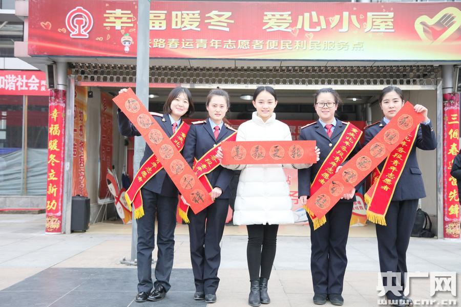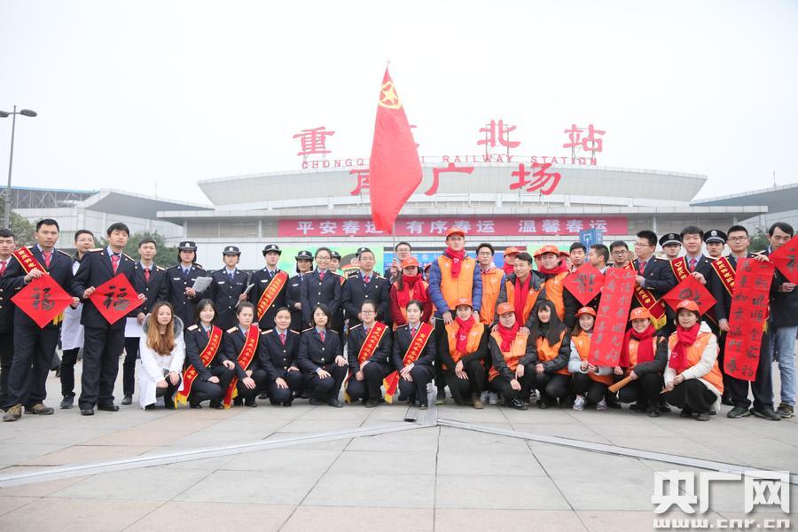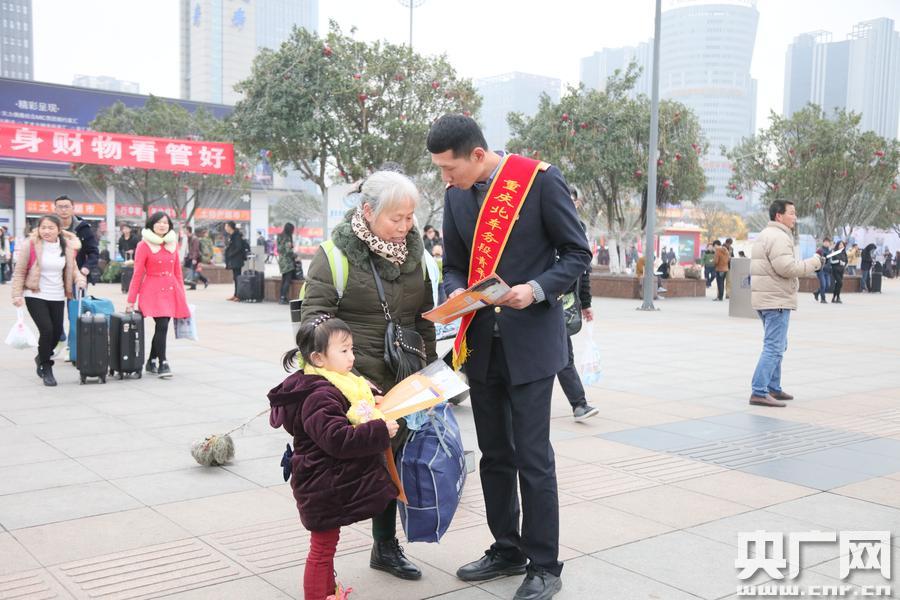 團支部積極與地方團委協(xié)調(diào)聯(lián)系,廣泛開展了春運首日志愿者服務活動。 (張婧星 攝) 央廣網(wǎng)重慶1月13日消息(記者劉湛)2017年鐵路春運今天拉開大幕。為順利實現(xiàn)“平安春運、有序春運、溫馨春運”的目標,重慶車站、重慶北車務段、重慶公安處、重慶疾控所等鐵路部門在重慶火車北站南廣場聯(lián)合開展了重慶片區(qū)“幸福暖冬 青春同行”志愿服務春運首日集中行動,為廣大旅客提供導購導乘、重點旅客協(xié)助、安全知識宣傳、陽光愛心救助等志愿服務。 在活動現(xiàn)場,志愿者們積極引導旅客到售票廳買票取票、為旅客發(fā)放鐵路春運宣傳資料,向旅客介紹高鐵的安全、方便、快捷以及服務的溫馨。青年志愿者在廣場上為旅客表演了“快閃”,并為旅客書寫、贈送春聯(lián)。此次活動服務旅客上千人次,得到旅客的一致好評。 同時,在車務段團委的號召下,管內(nèi)各站團支部積極與地方團委協(xié)調(diào)聯(lián)系,廣泛開展了春運首日志愿者服務活動。 -